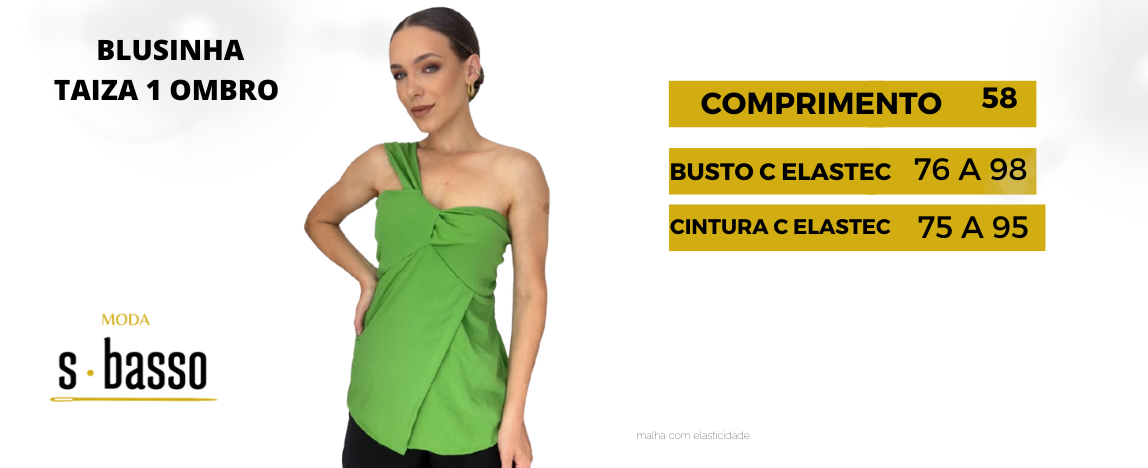 Essa é aquela blusinha pra quem gosta de ser arrojada sem perder a elegancia, com uma alça mais larga, contorno no busto e ainda um recorte na parte de baixo onde vc pode deixar um lado dentro da parte de baixo , uma peça vc pode ser bem criativa, a parte da costa tem elastec que deixa a frente moldada com todo conforto