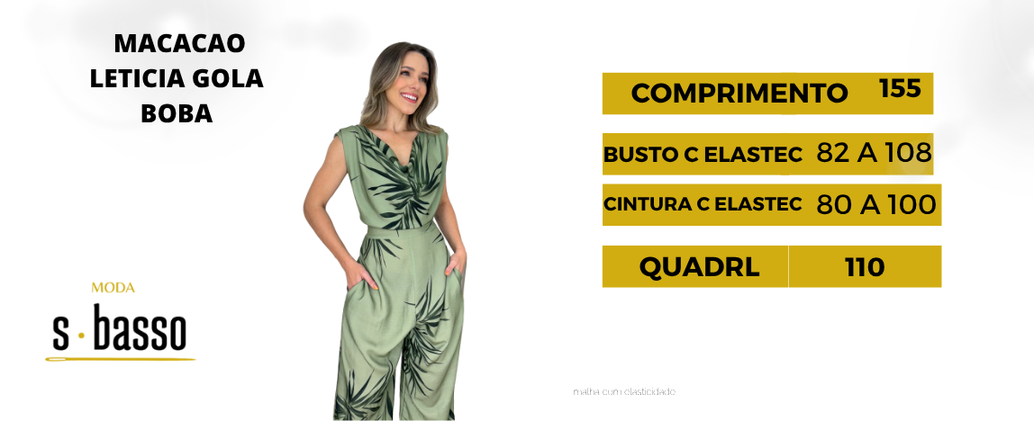 Nosso macacao gola boba é o modelo que como o nome diz muito despojado mas ao mesmo tempo elegante deixando voce sempre bem em toda ocasiao, a parte de traz da costa é feita de lastec deixando a peça muito confortavel, pratica na hora de colocar e moldando ao corpo na parte da frente, acompanha 2 bolsos laterais